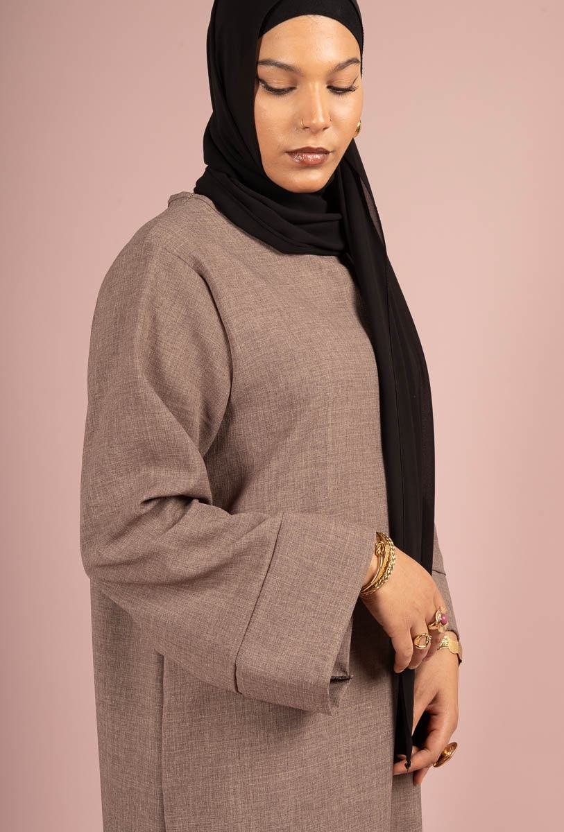 Découvrez notre abaya fermée en lin, une pièce maîtresse conçue pour celles qui recherchent une tenue à la fois moderne, respirante et parfaitement couvrante. Sa matière naturelle au tombé fluide assure une allure sophistiquée en toute saison.