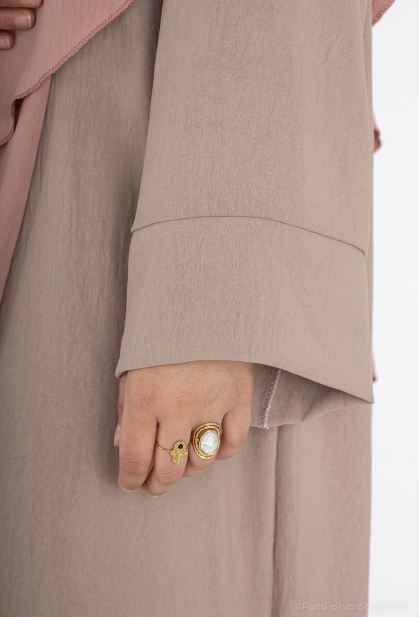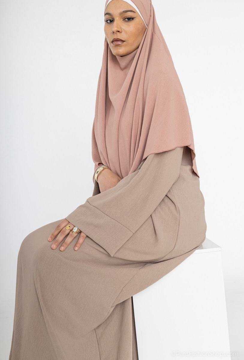 Conseil Style : À marier avec un khimar vieux rose ou un hijab en soie de Médine pour un contraste doux et sophistiqué.