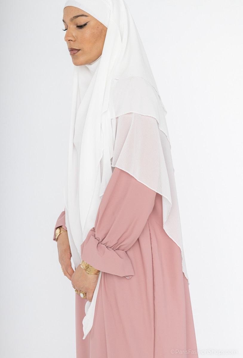 Optez pour notre Abaya en soie de Médine, la pièce favorite de la garde-robe modest fashion. Grâce à son tissu haut de gamme, cette robe offre un retombé fluide, une opacité totale et un aspect soyeux qui ne se froisse pas, idéal pour rester élégante toute la journée.