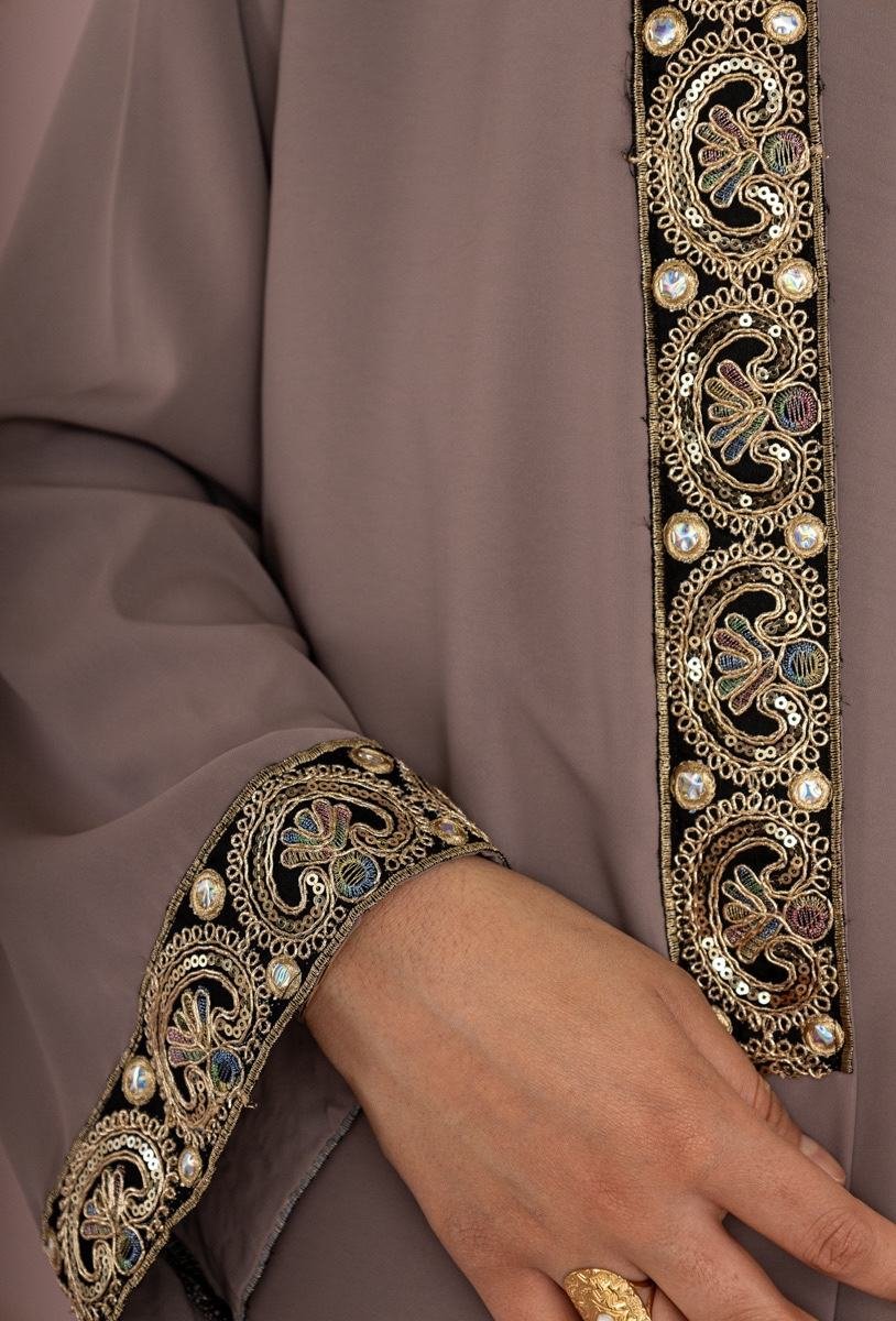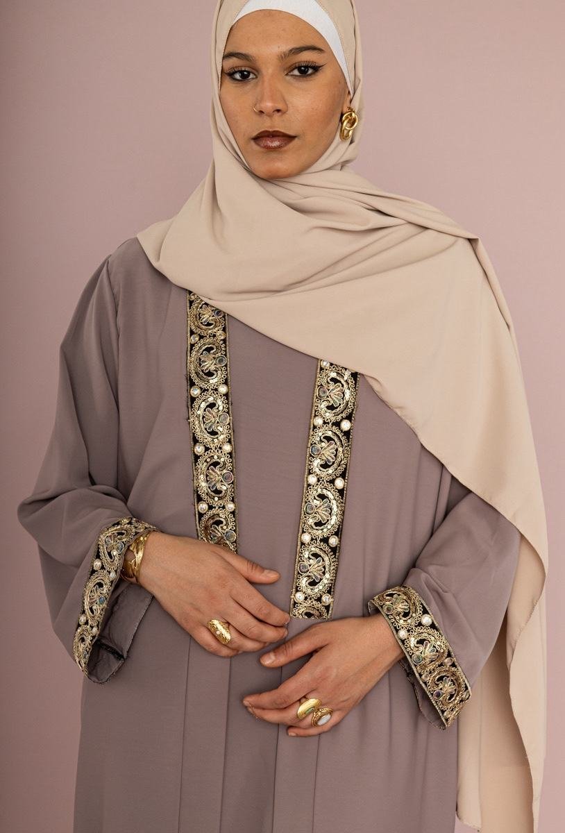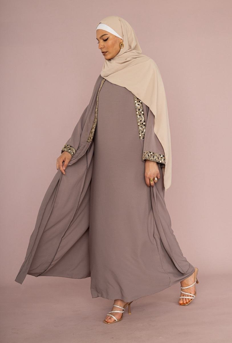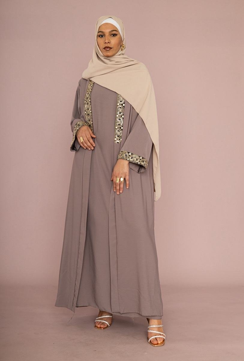 Teinte Taupe Intemporelle : Une couleur neutre, chic et apaisante, idéale pour l’Aïd, une cérémonie, ou une sortie élégante.